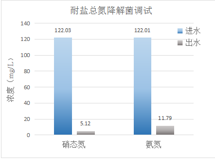 糧果廢水鹽度2%,30℃下經(jīng)過(guò)我司耐鹽總氮降解菌的生物調(diào)試后,硝態(tài)氮的去除率超過(guò)95%、氨氮的去除率超過(guò)90%。